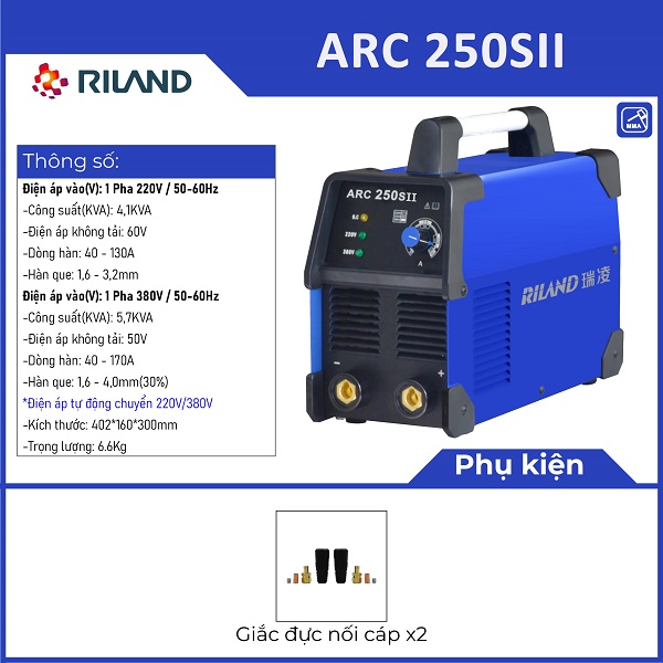 + Máy Hàn Riland ARC 250SII sử dụng được 2 loại điện áp 220V/380V.