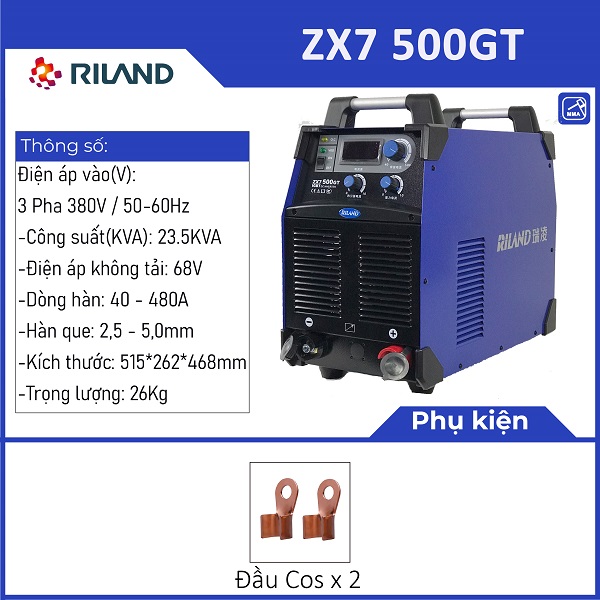 + Máy hàn Riland ZX7 500GT là phiên bản cao cấp dòng 500A, hiệu suất làm viêc cao .